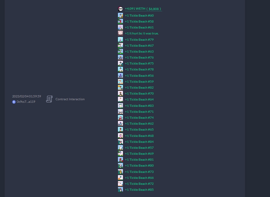 Примеры списаний с помощью такой 1 подписи. NFT из разных коллекций - идут к нам и WETH если они есть. В обычном дрейнере Апрув с красной кнопкой и 1 Апрув - 1 коллекция. OpenSea начала бороться с методом и некоторые коллекции не передаються и автобаны на платформе OpenSea.